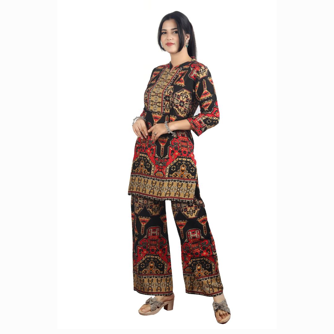 Make a bold and stylish statement with the LOR Printed A-Line Cut Co-Ord Set, crafted from premium Reyon fabric. Designed with a modern A-line silhouette and trendy printed detailing, this set combines comfort, elegance, and versatility. Ideal for parties, festive celebrations, casual outings, and office wear, this outfit is a super hit and a must-buy for every wardrobe.