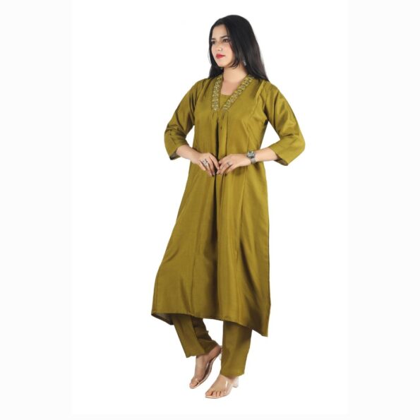 LOR V-Neck Kurti Pant Set in Roman Silk Fabric (Super Hit – Must Buy)