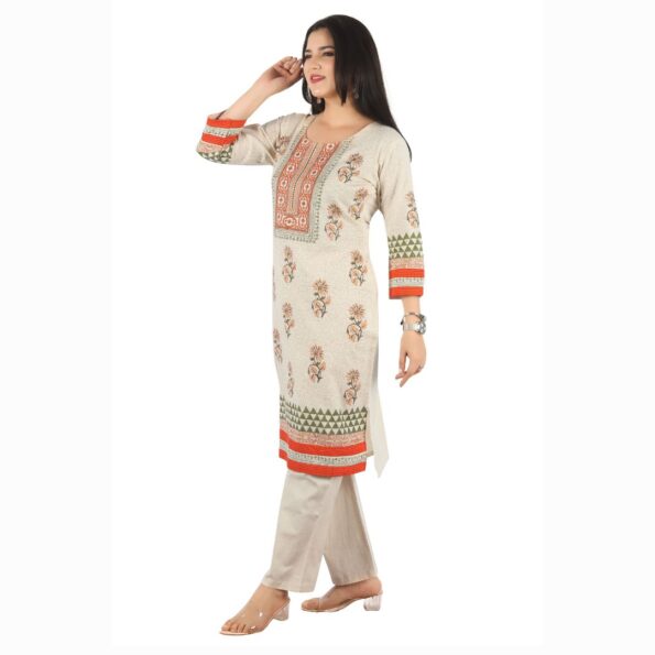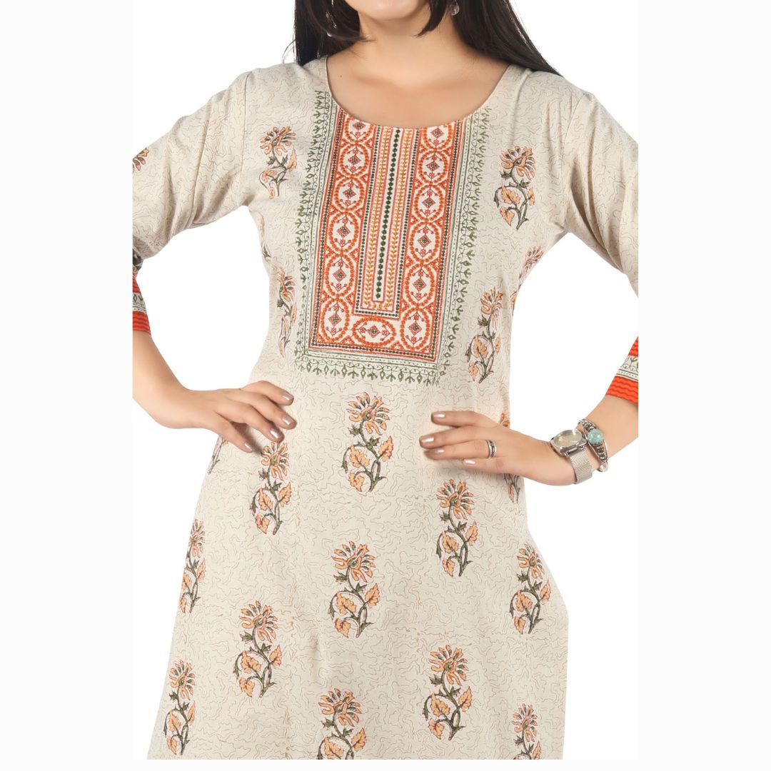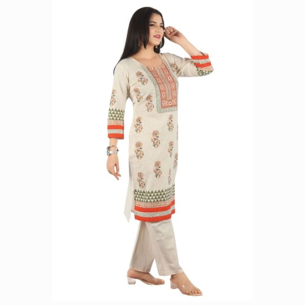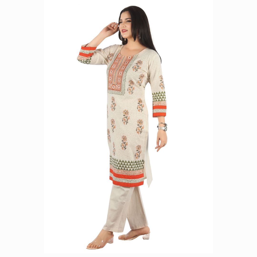 Printed Kurta and Pants Set in White Flex Cotton – A-Line Cut & Round Neck (Super Hit – Must Buy)