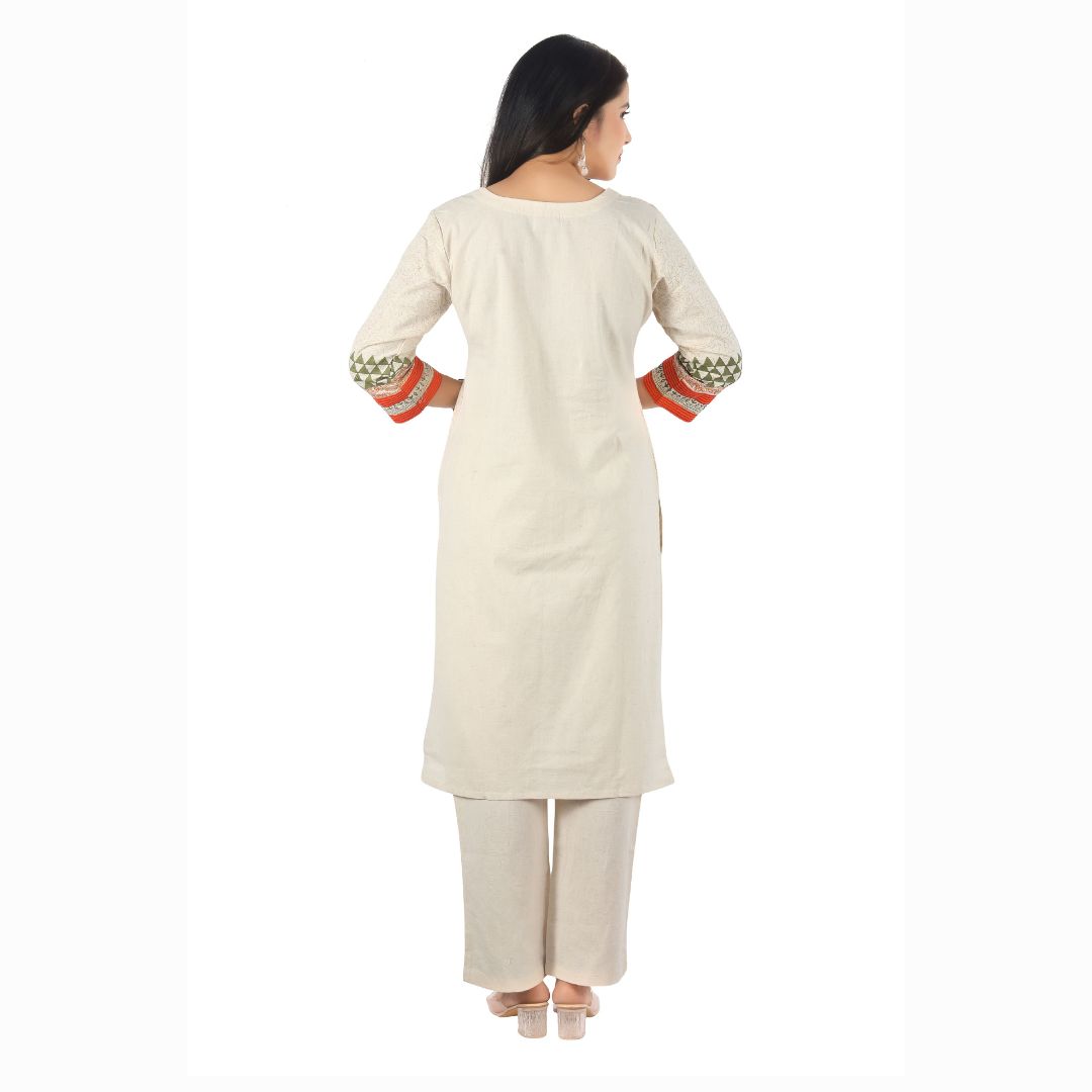 Step into timeless elegance with this Printed Kurta and Pants Set in White Flex Cotton, designed with an A-line cut and a classic round neck for effortless sophistication. Crafted from premium Flex Cotton fabric, this set ensures breathability, comfort, and all-day wearability, while the stylish print and solid finish add a touch of modern charm. A super hit must-buy outfit, this set is perfect for casual outings, festive occasions, or office wear.