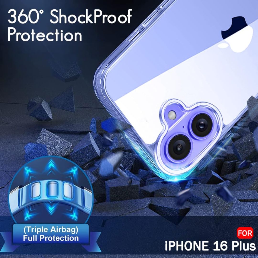 - 1 x Ultra-Hybrid Crystal Clear Back Case Cover for iPhone 16 Plus (Transparent)