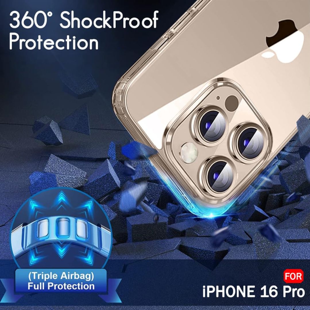 - 1 x Ultra-Hybrid Crystal Clear Back Case Cover for iPhone 16 Pro (Transparent)